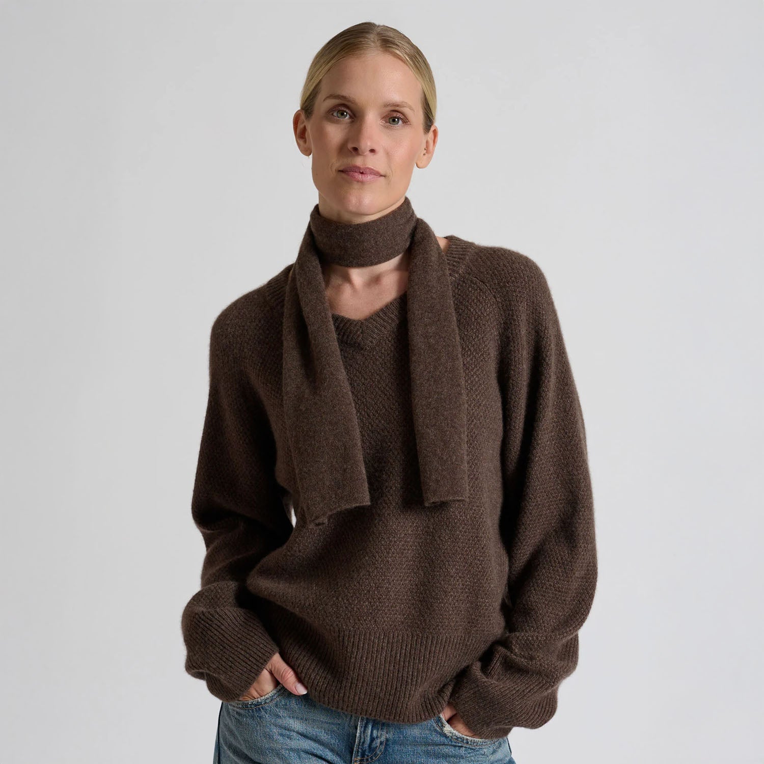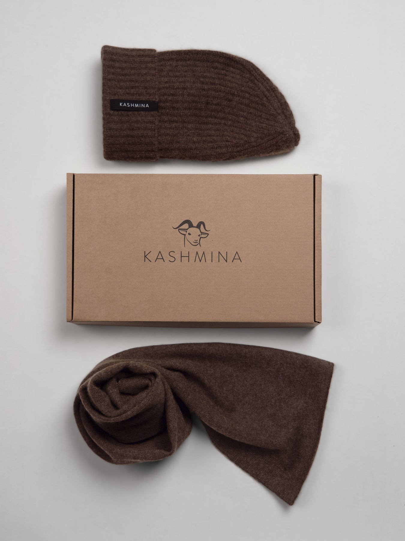 Kashmirskjerf i 100% ren kasjmirull. Norsk design fra Kashmina. Farge: Dark Brown.