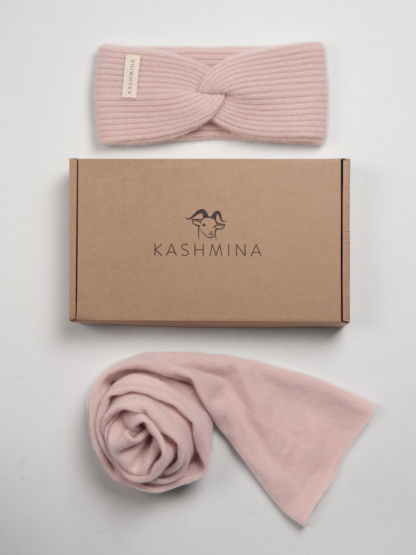Pannebånd "Freya" i 100% ren kasjmirull. Norsk design fra Kashmina. Farge: Rose Glow.