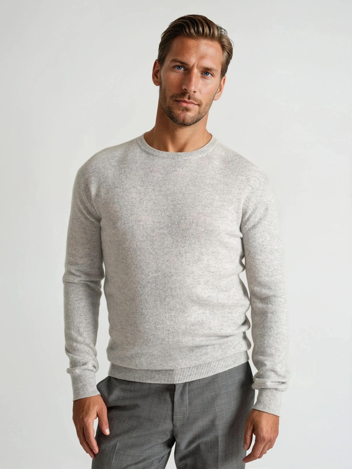 Klassisk ullgenser til herre med rund hals. 100% ren kashmir i slitesterk kvalitet! Kashmirgensere er et godt og stilig valg til herre da gensere laget av kashmir puster og slipper overflødig varme ut, samtidig som det er et materiale som ikke klør og irriterer.