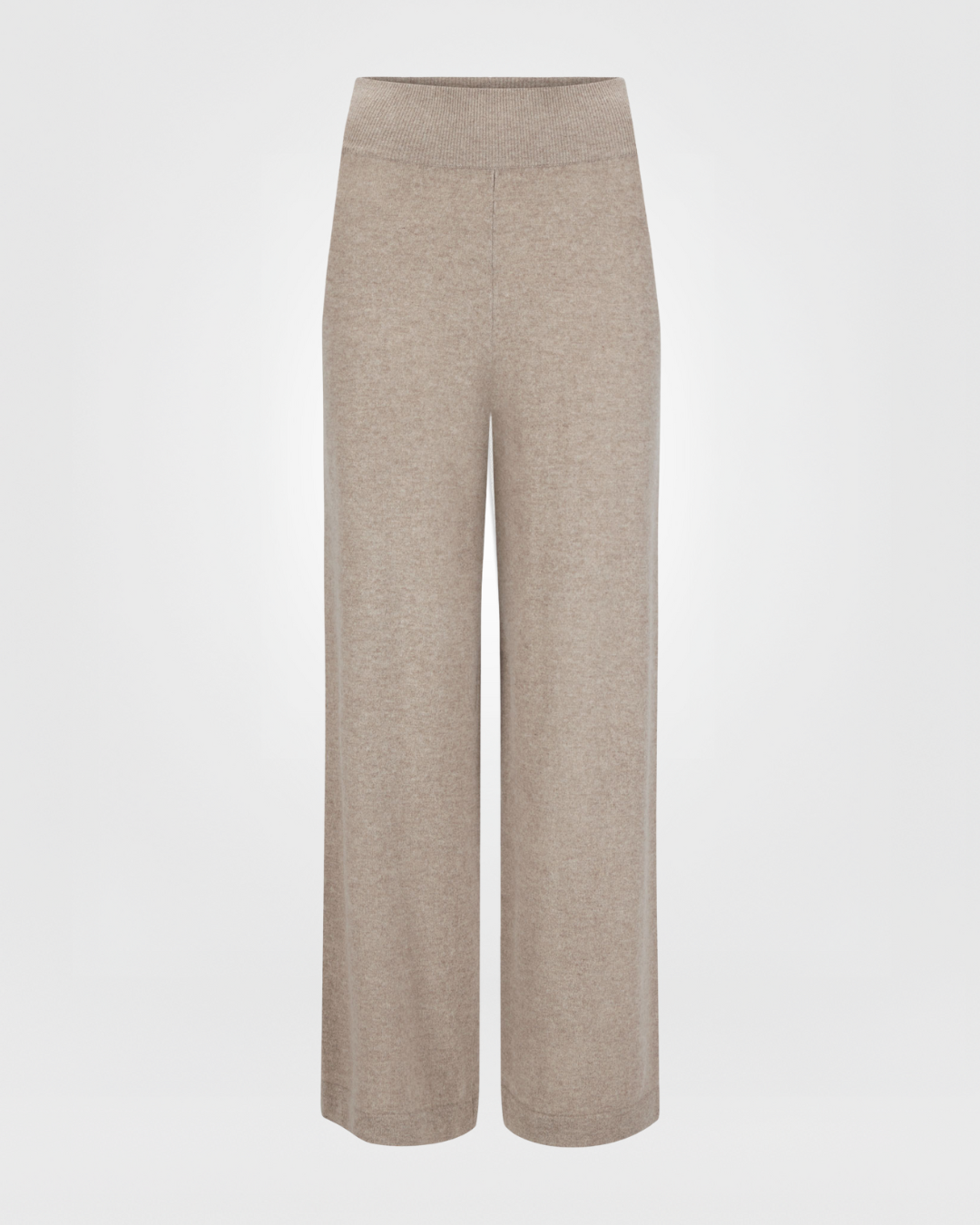 Dagny er en nydelig kashmirbukse i 100% ren kashmir. Myk og helt kløfri kvalitet. Buksen er høy på livet, har en bred og behagelig ribbestrikk i livet, og et flatterende fall med vide ben.