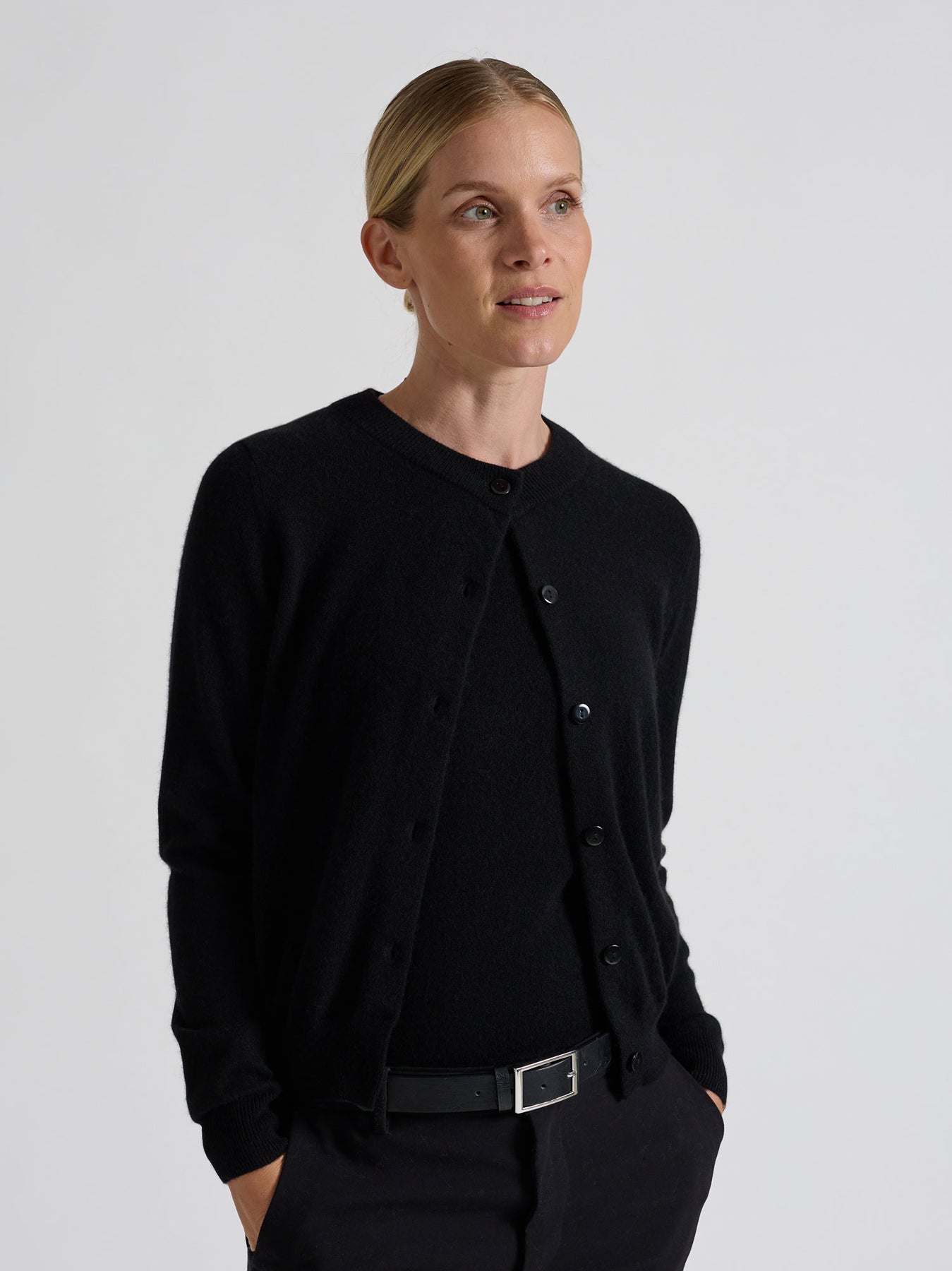 Kashmircardigan "Ingrid" i 100% ren kasjmirull. Norsk design fra Kashmina. Farge: Sort.