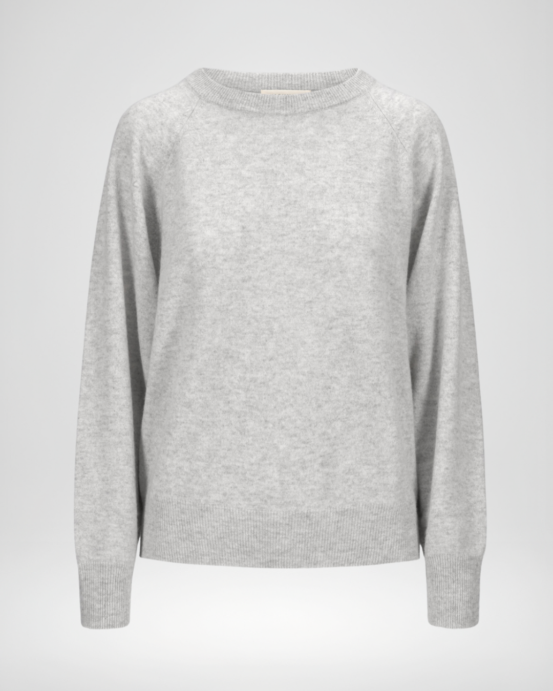 Rundhalset kashmirgenser "Embla" i 100% ren cashmere. Norsk design fra Kashmina. Farge: Lys grå.