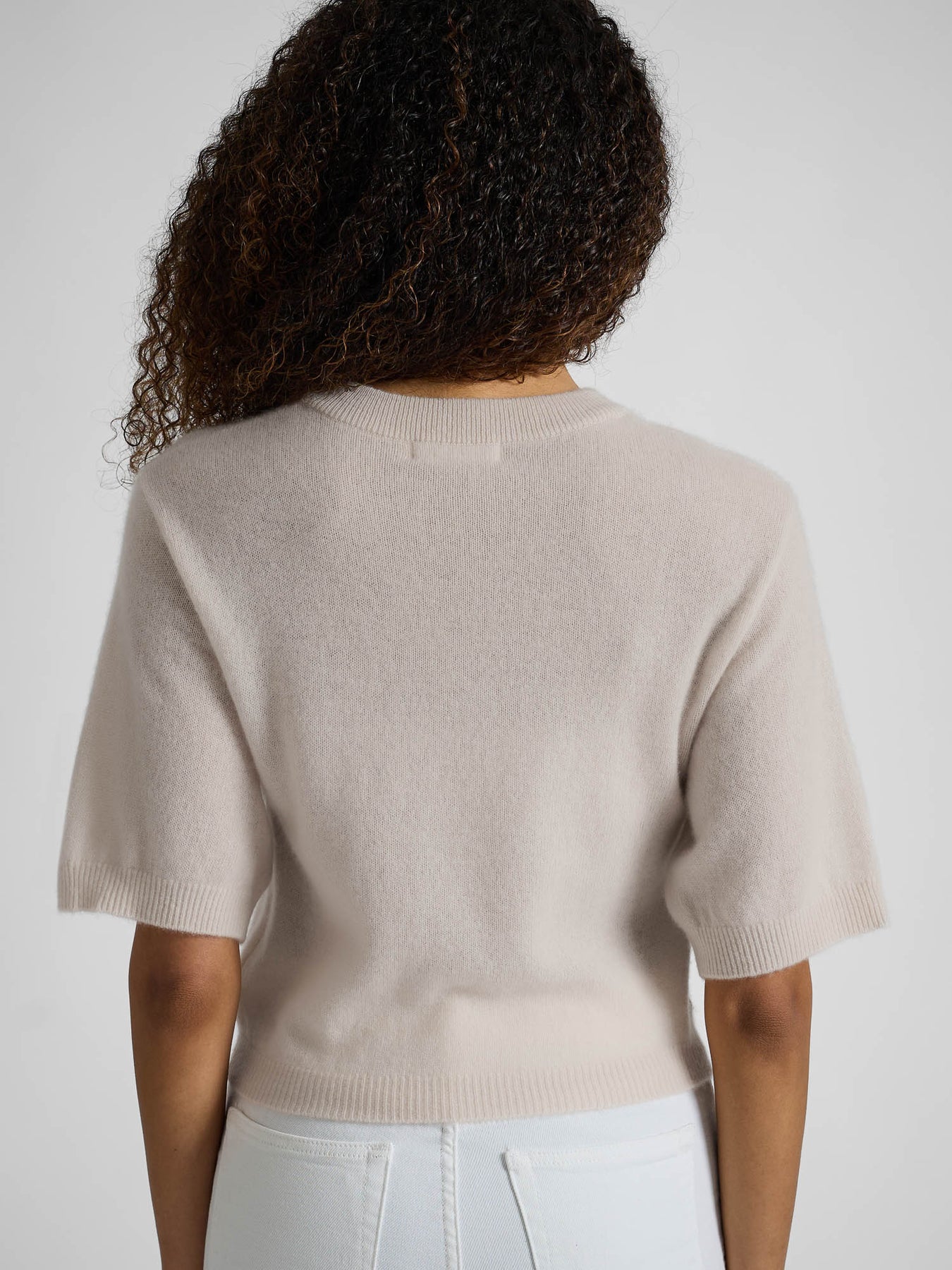 Kashmirtopp med rund hals, albue-lange ermer og en nett og feminin passform. Toppen er laget i en særdeles luftig og fluffy kvalitet som både puster og varmer. Perfekt tilskudd til din vår- og sommergarderobe. 100% kashmir i vår nydeligste kvalitet. Styles gjerne til skjørt og shorts – og kan være sommertoppen du har på sommerfest eller den du går med under blazer på jobb. Anvendbar og helt tidløs.