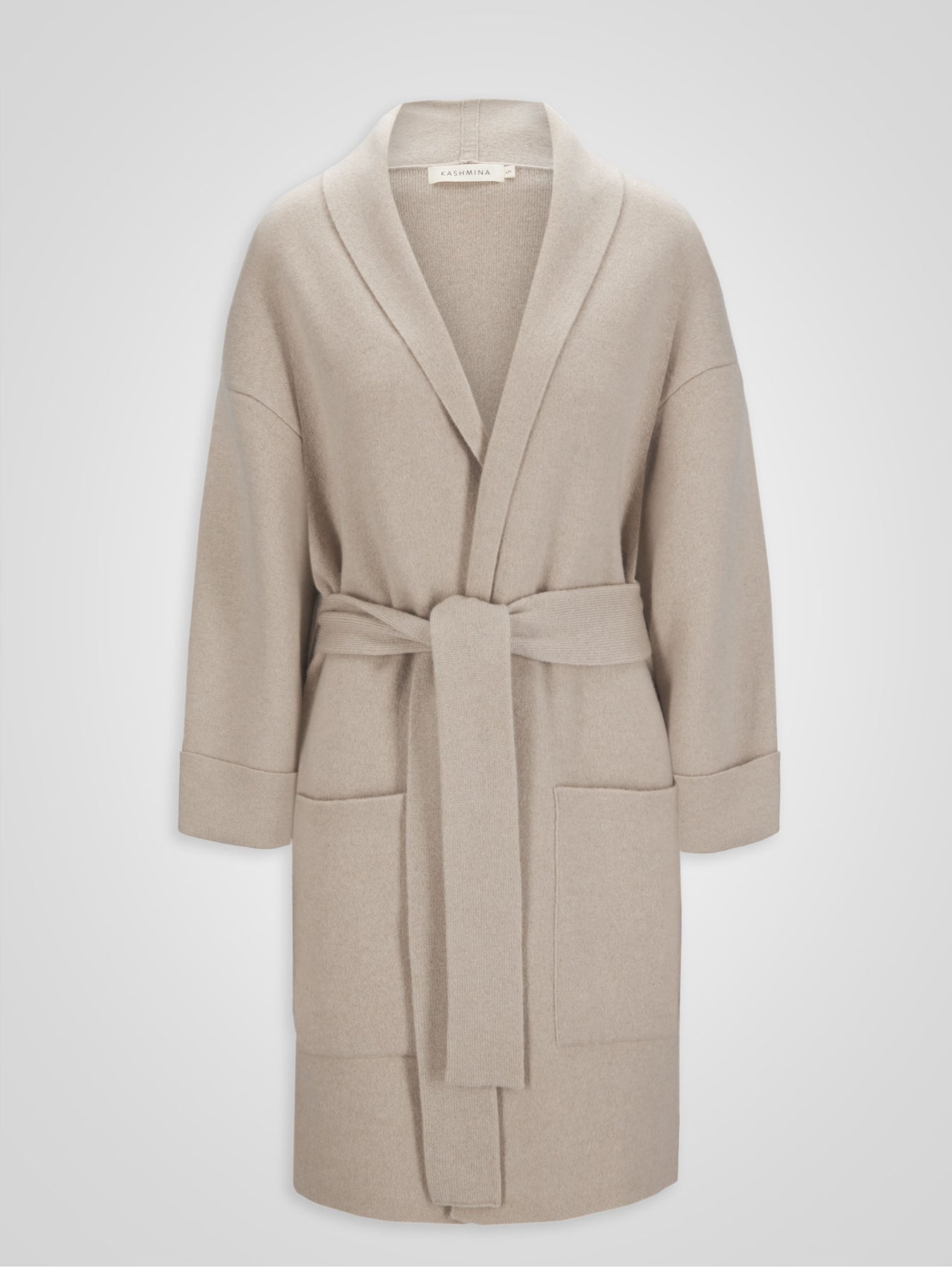 Tykk, sofistikert og klassisk kåpe i 100% ren kashmirull. Eksklusiv jacquard/two-faced kashmir, som er en ekstra tykk og eksklusiv kvalitet. Kåpen er en ytterjakke for høst/vinter/vår.