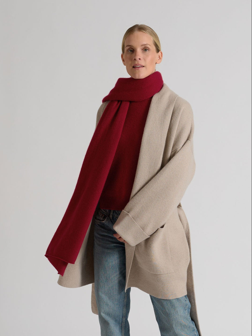 "Fantastisk kvalitet. I løpet at de siste to årene har jeg kjøpt flere plagg. Morgenkåpen er i bruk både morgen og kveld, svart genser går til alt!, bukse som er nydelig å krype inn i på kalde dager, signatursjalet et "must" på flytur og ferier, lang cardigan som jeg gleder meg til å bruke i høst og i skrivende stund et grått skjerf på vei i posten! Kvaliteten på plaggene er veldig fin og myk og de holder seg godt i vask."