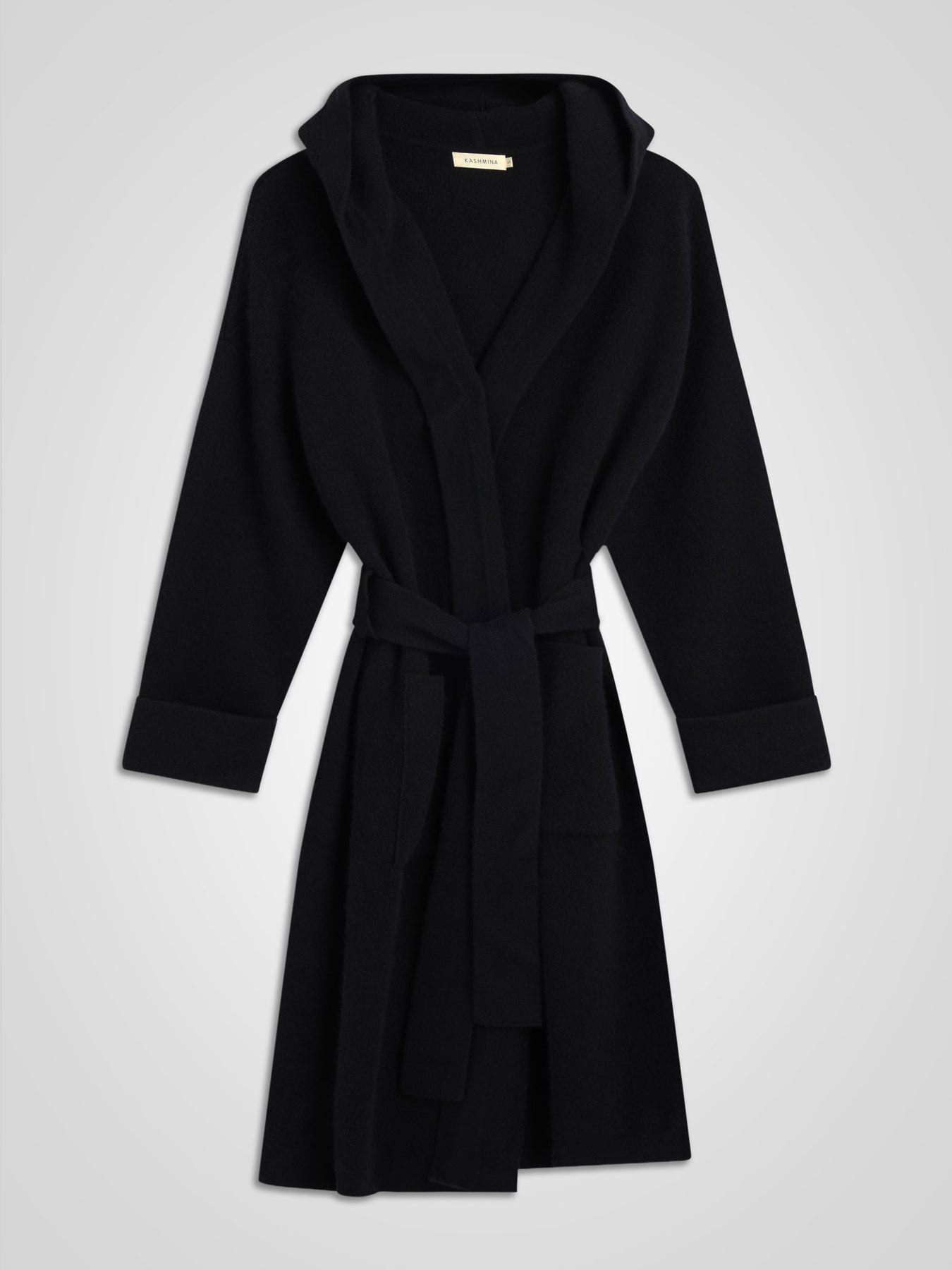 Tykk og eksklusiv kåpe i 100% ren kashmirull. Strikket i eksklusiv jacquard kvalitet, det vil si dobbel kashmir. Nora har eksklusive endinger, en deilig hette, et mykt og godt belte i livet og hele kåpen oser av eksklusivitet. Et av Kashmina sine nøkkelprodukter - et tidløst og ikonisk plagg.