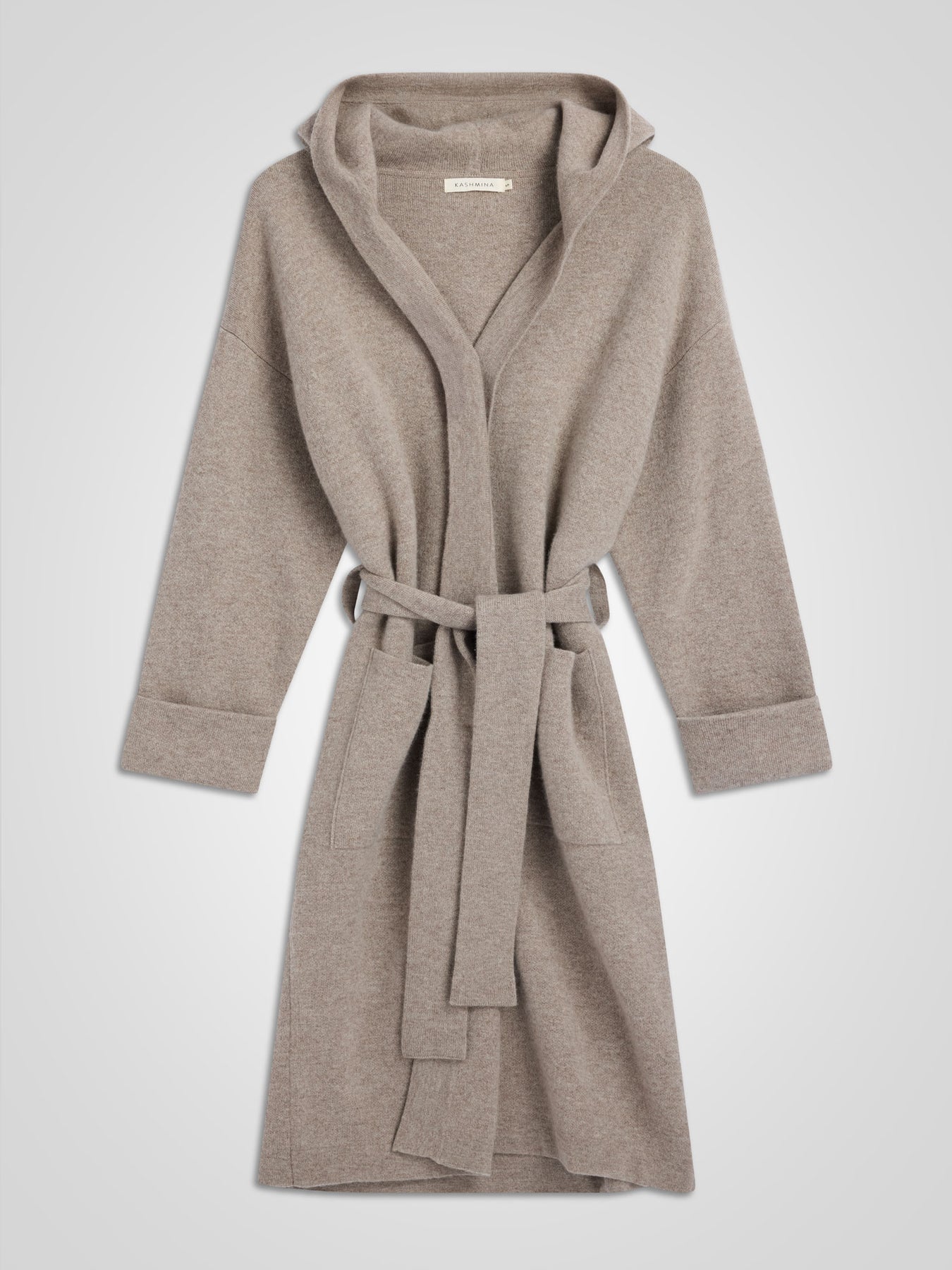 Tykk og eksklusiv kåpe i 100% ren kashmirull. Strikket i eksklusiv jacquard kvalitet, det vil si dobbel kashmir. Nora har eksklusive endinger, en deilig hette, et mykt og godt belte i livet og hele kåpen oser av eksklusivitet. Et av Kashmina sine nøkkelprodukter - et tidløst og ikonisk plagg.