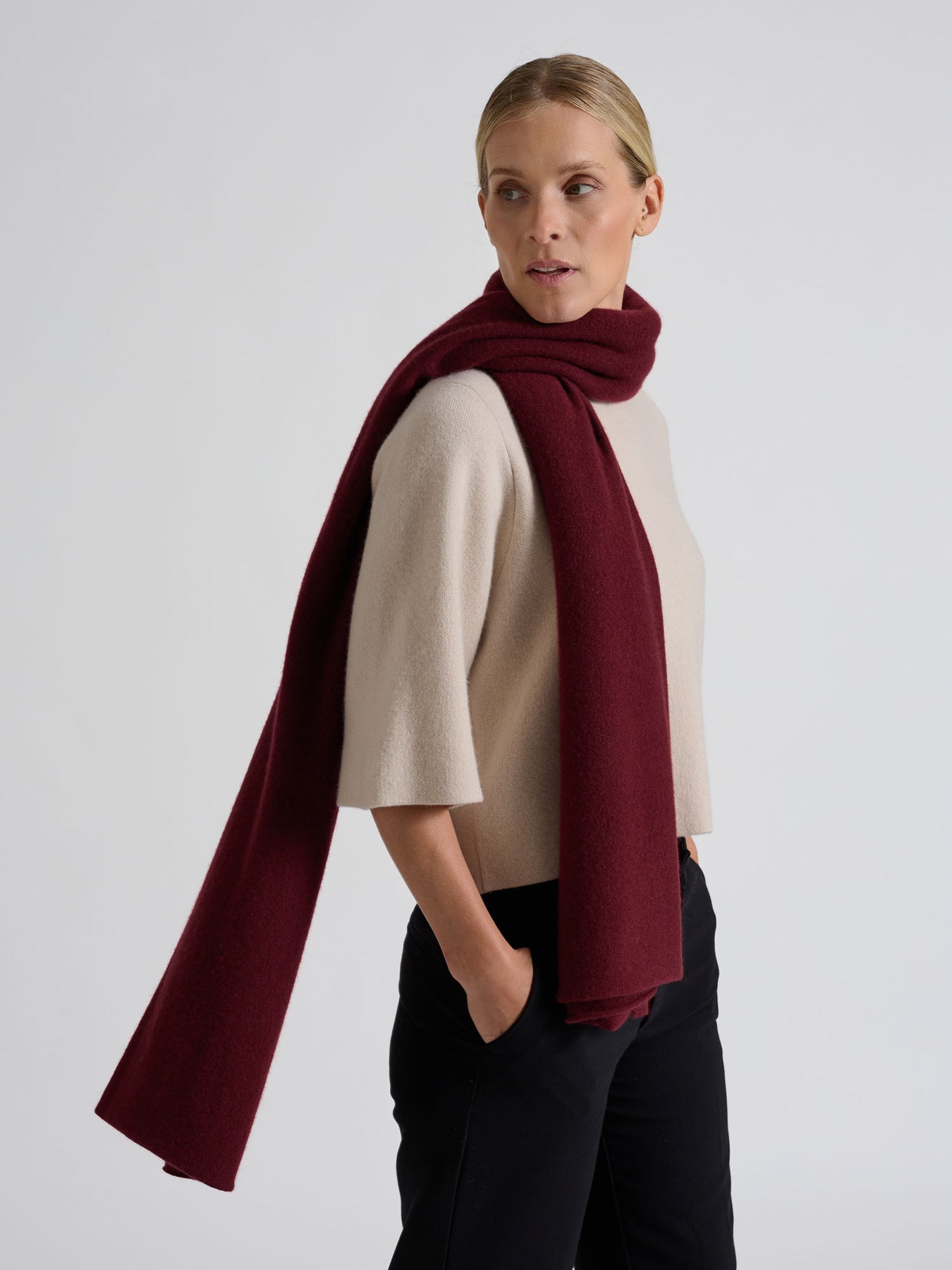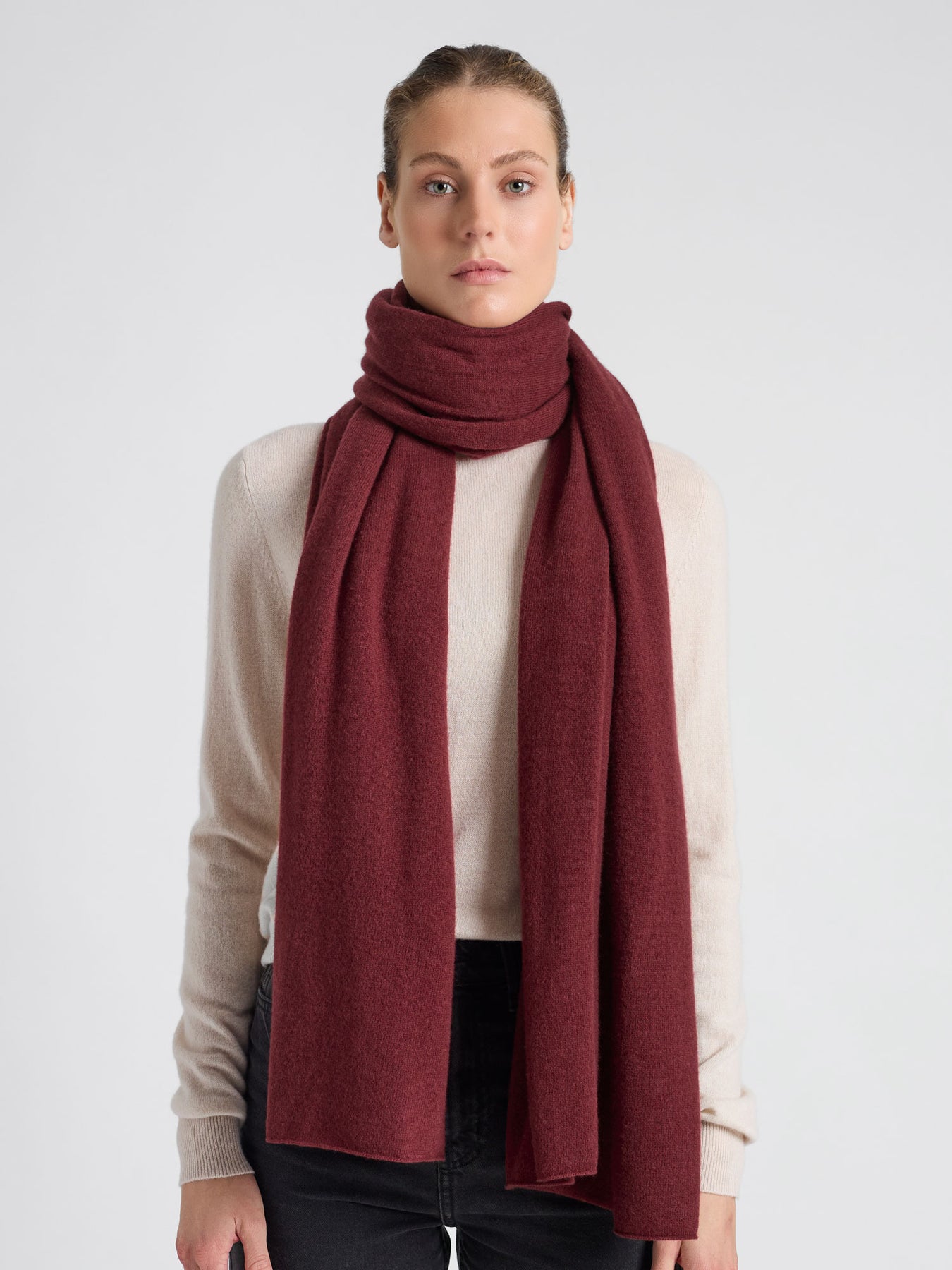 Kashmirskjerf "Signature" i 100% ren kasjmirull. Cashmere skjerf. Norsk design fra Kashmina. Farge: Bordeaux.